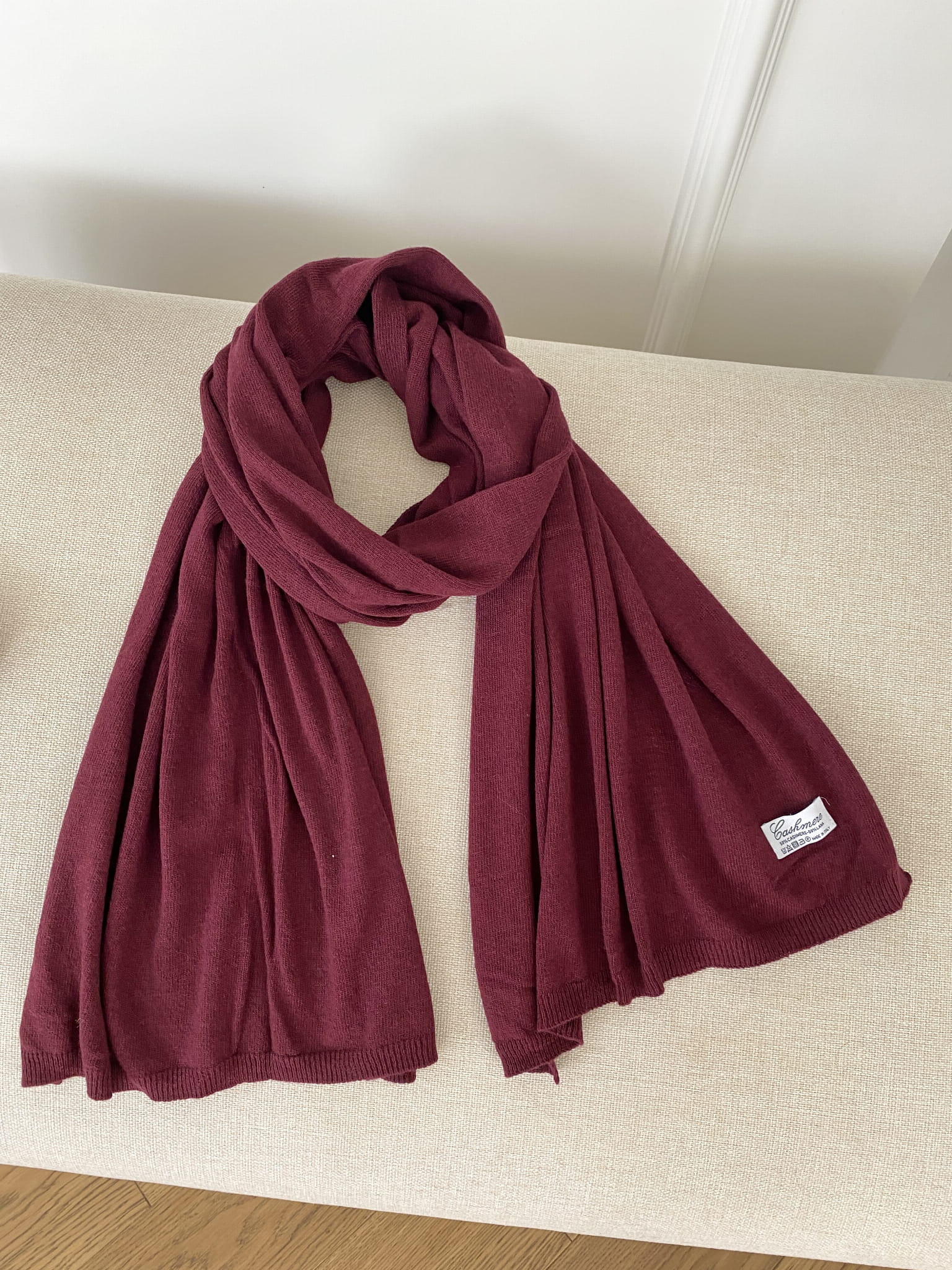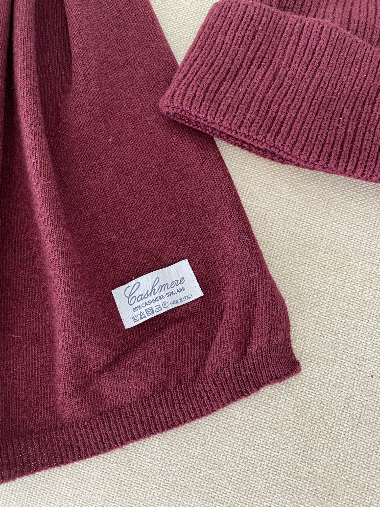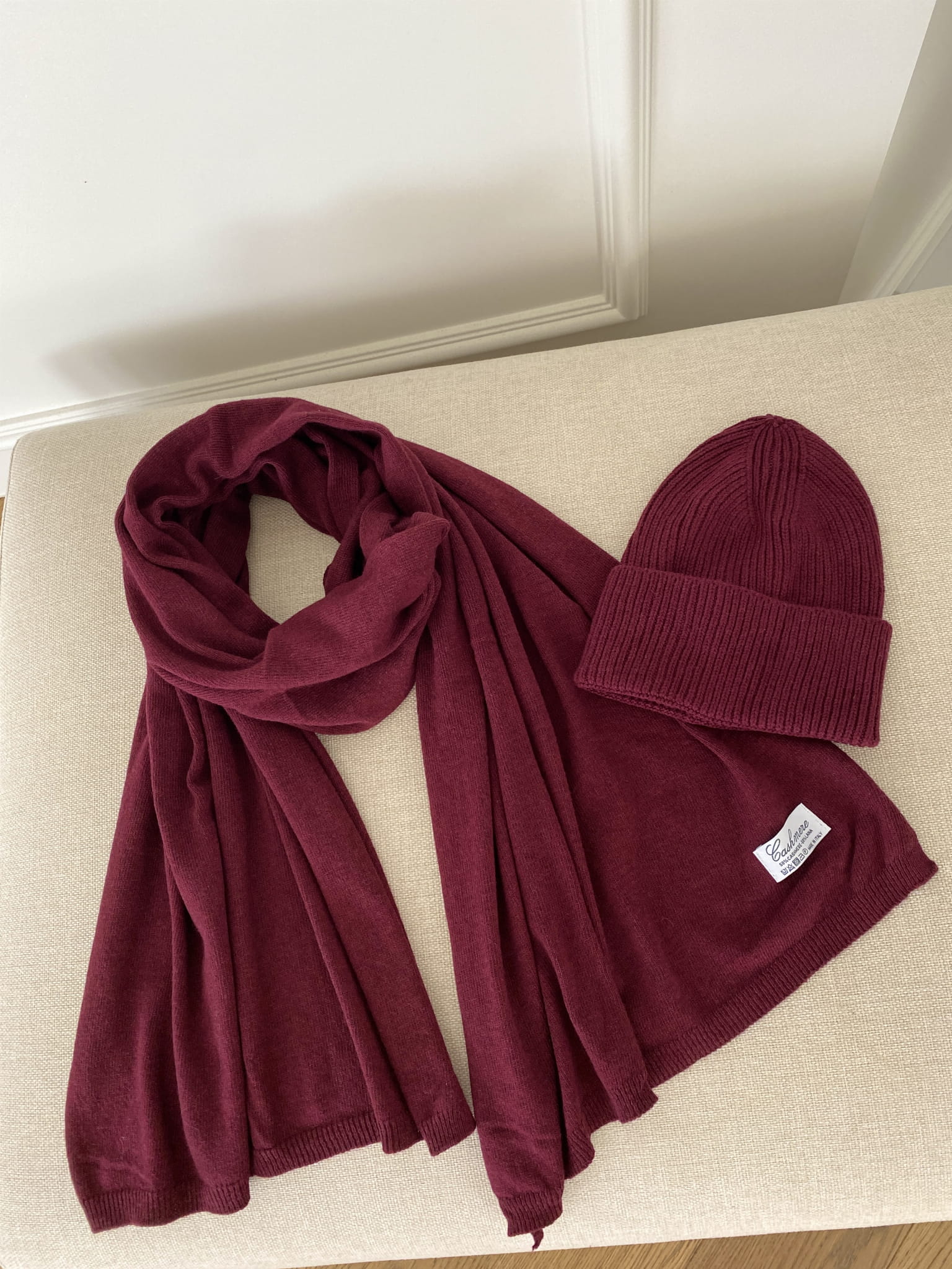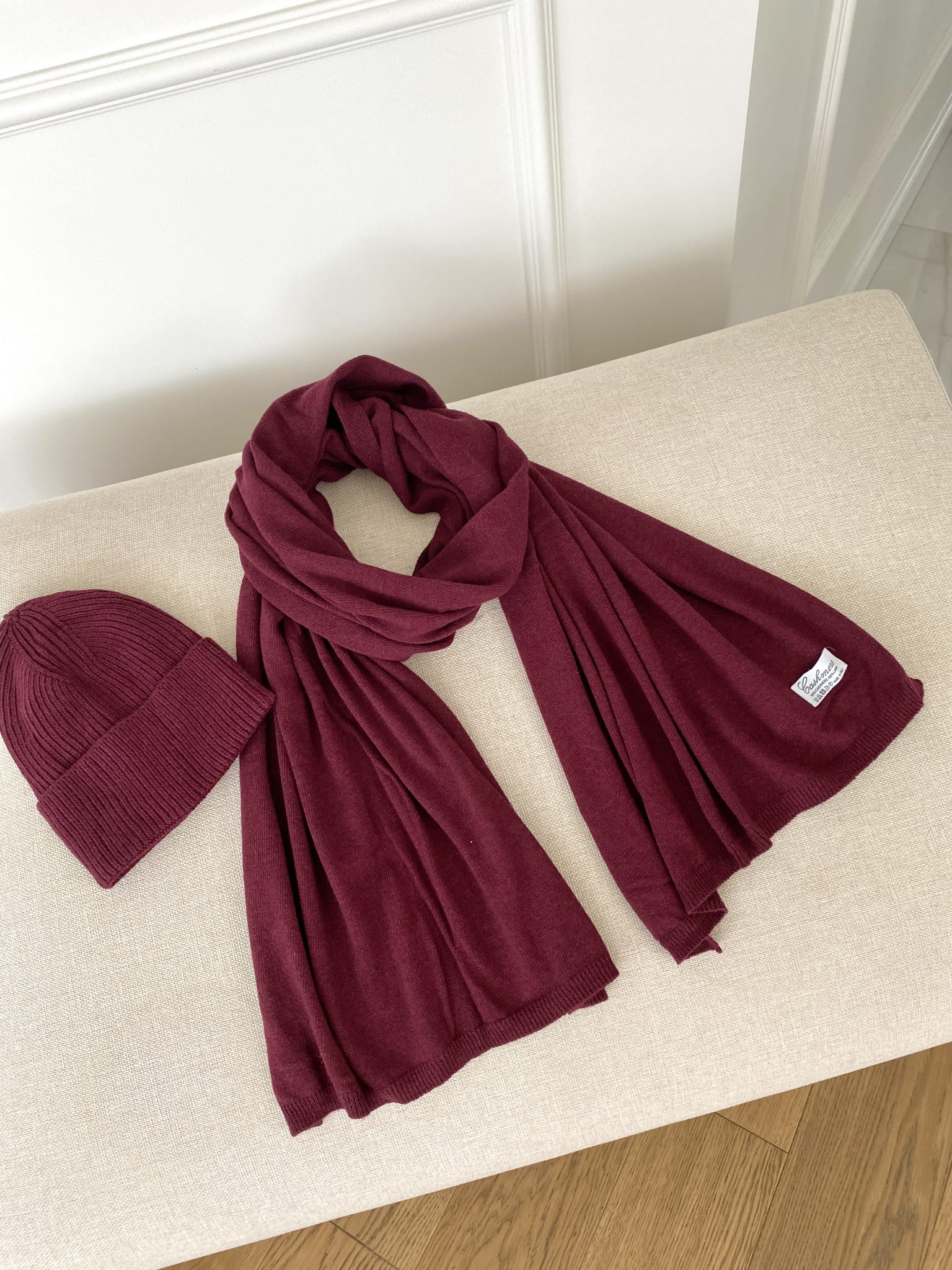 Komplet Szal + Czapka kaszmir i wełna Bordo