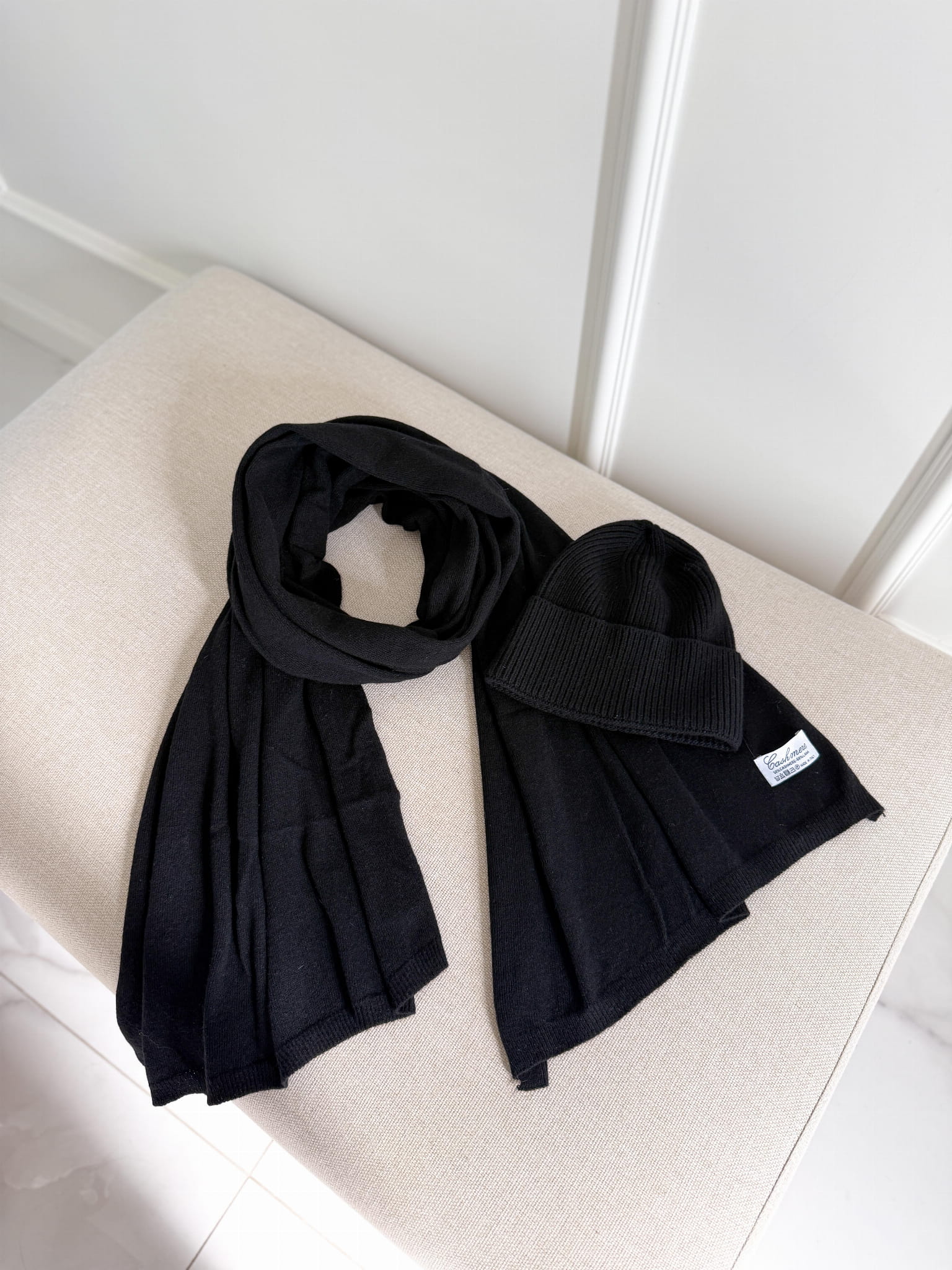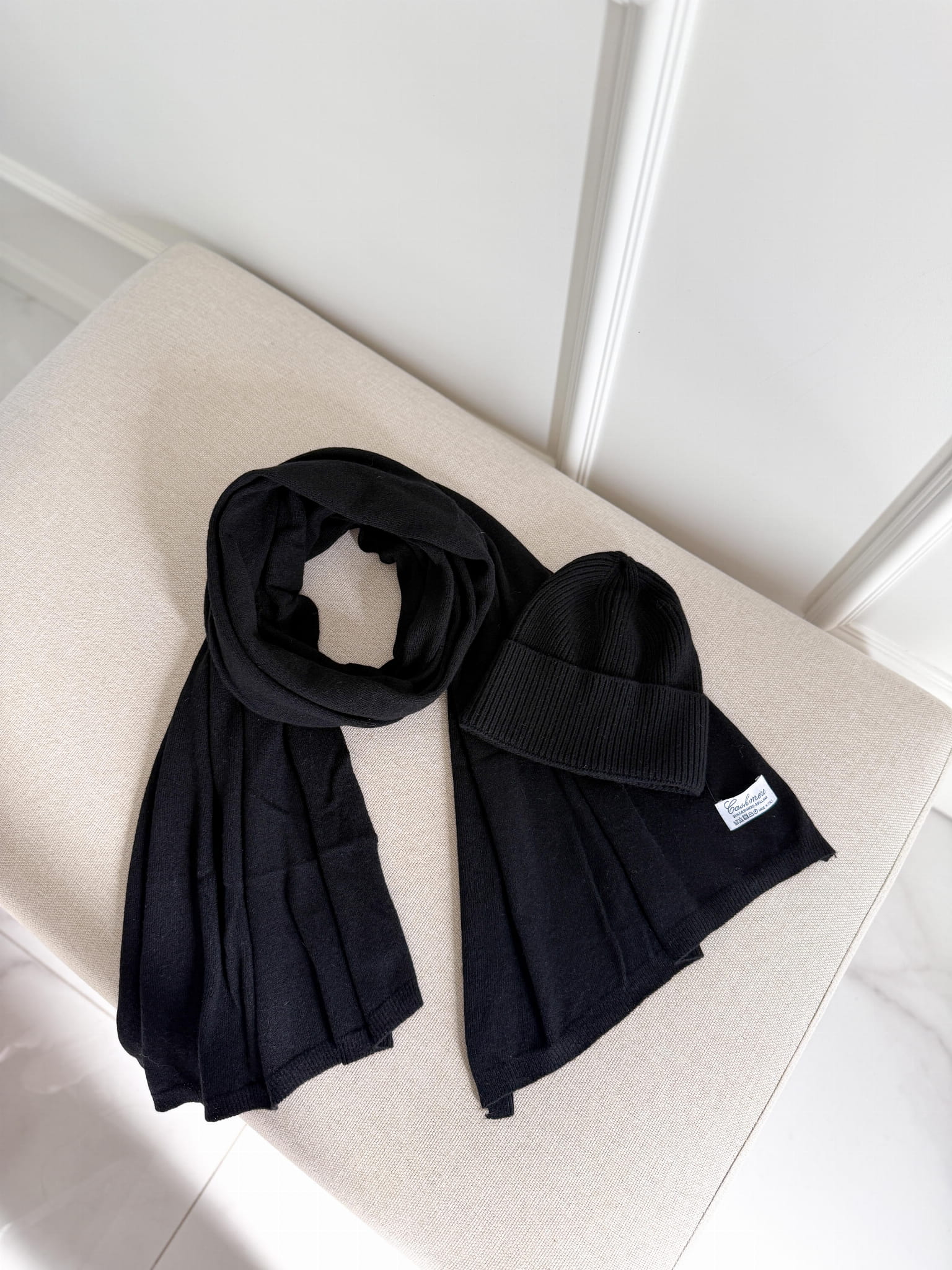 Komplet Szal + Czapka kaszmir i wełna Czarny