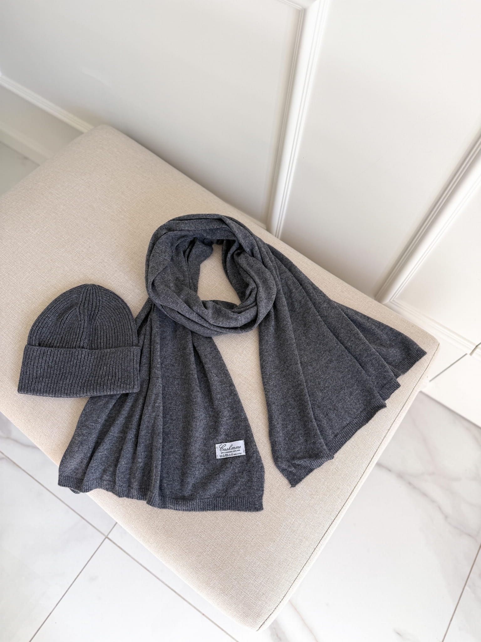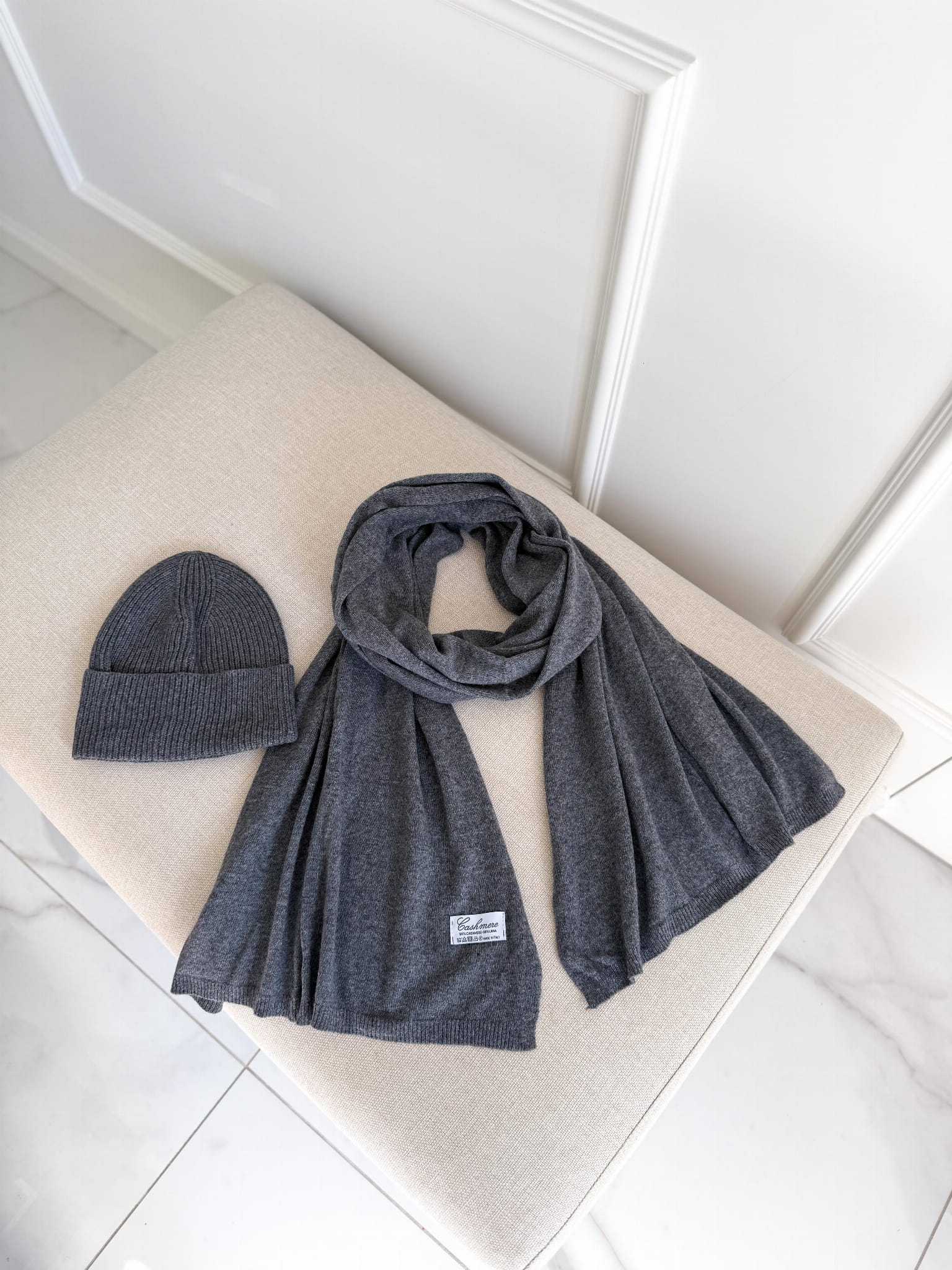 Komplet Szal + Czapka kaszmir i wełna Szary