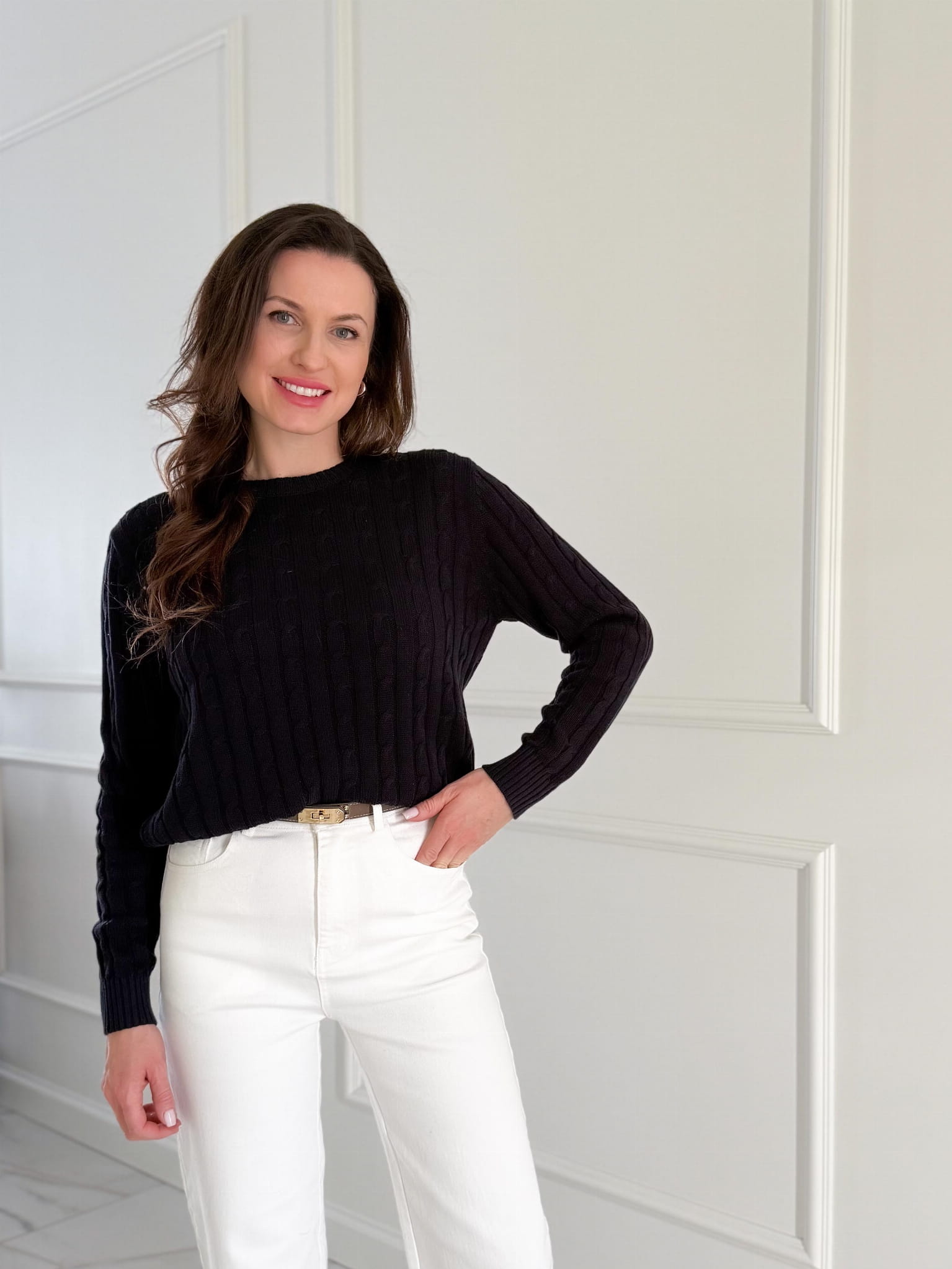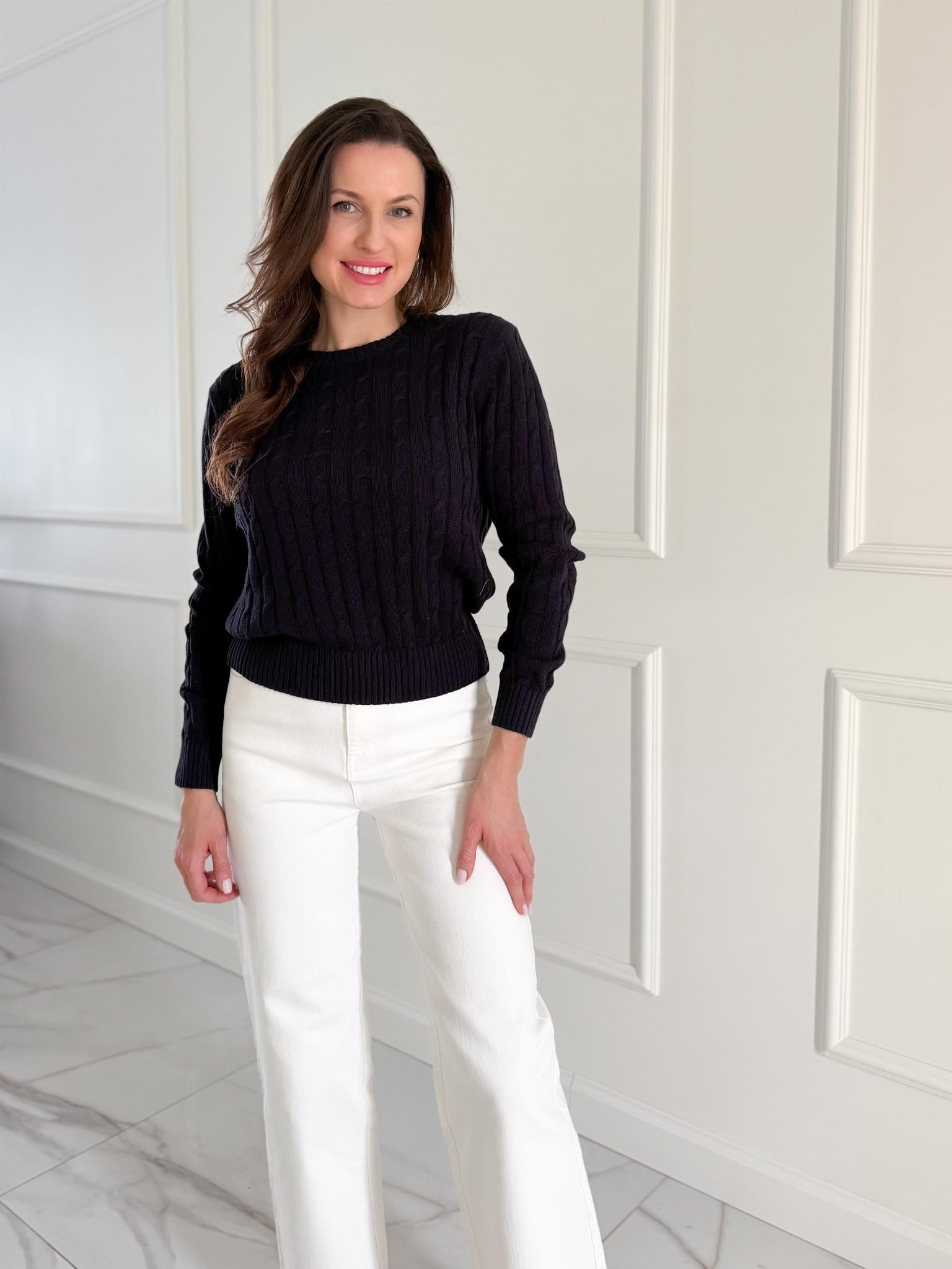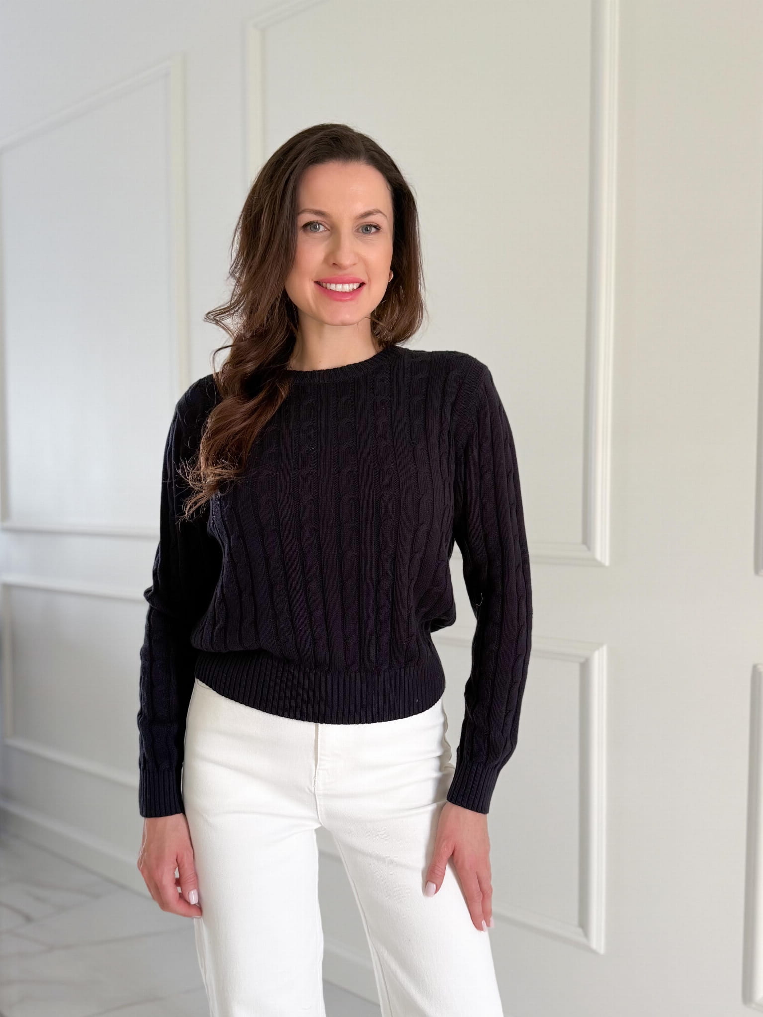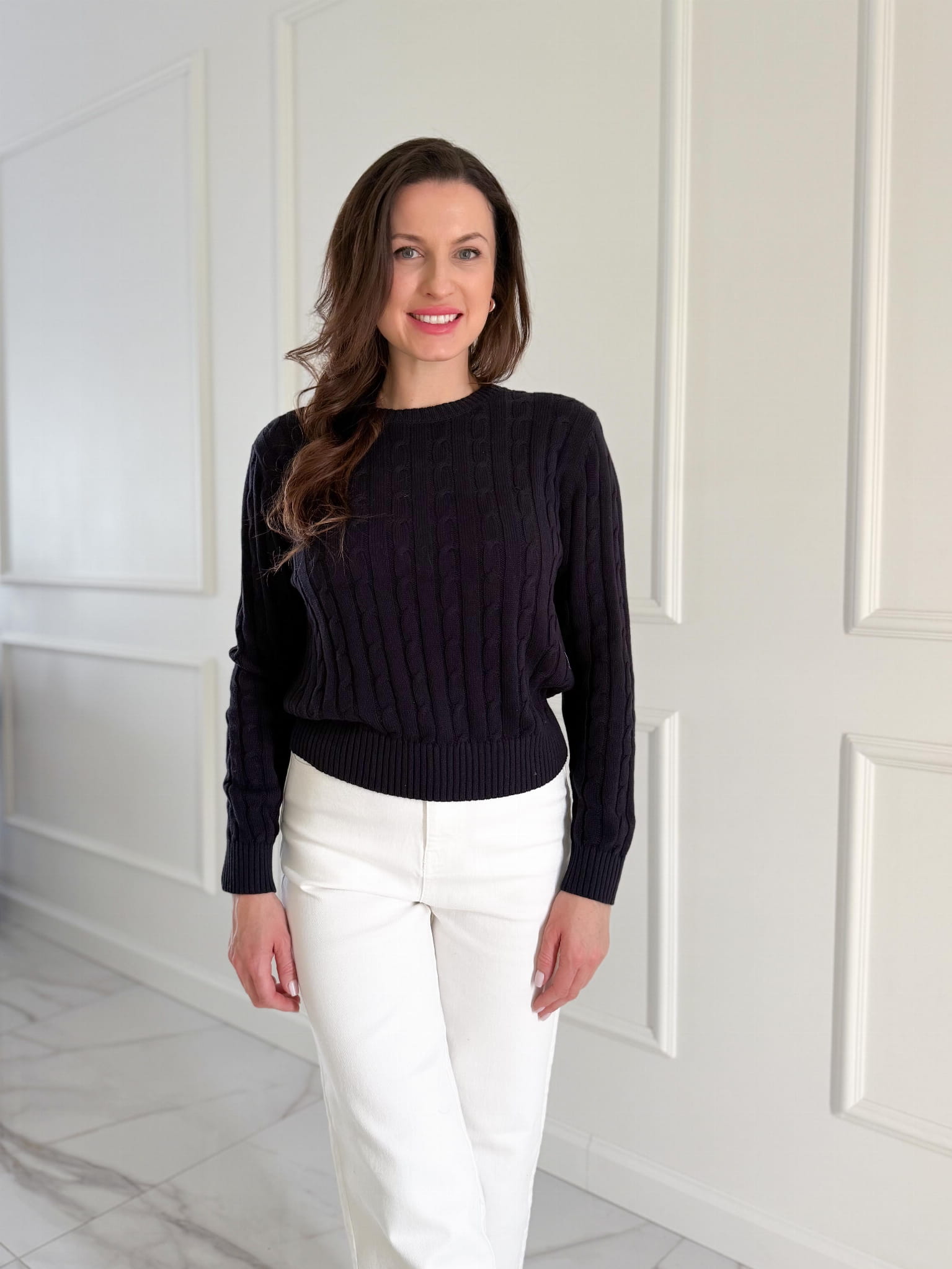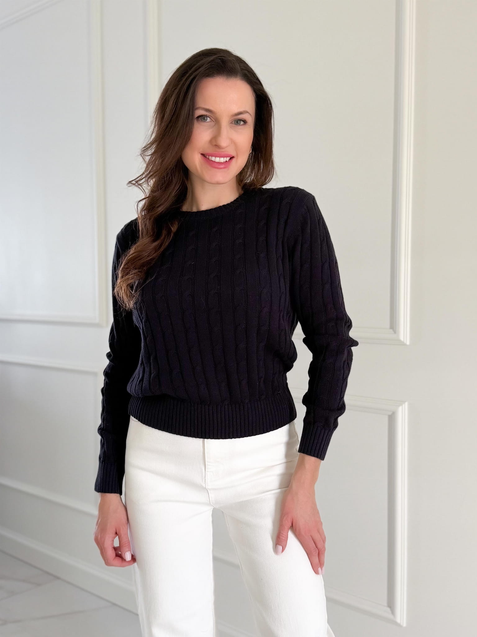 Sweterek o przepięknym warkoczowym splocie, klasycznym i ponadczasowym.