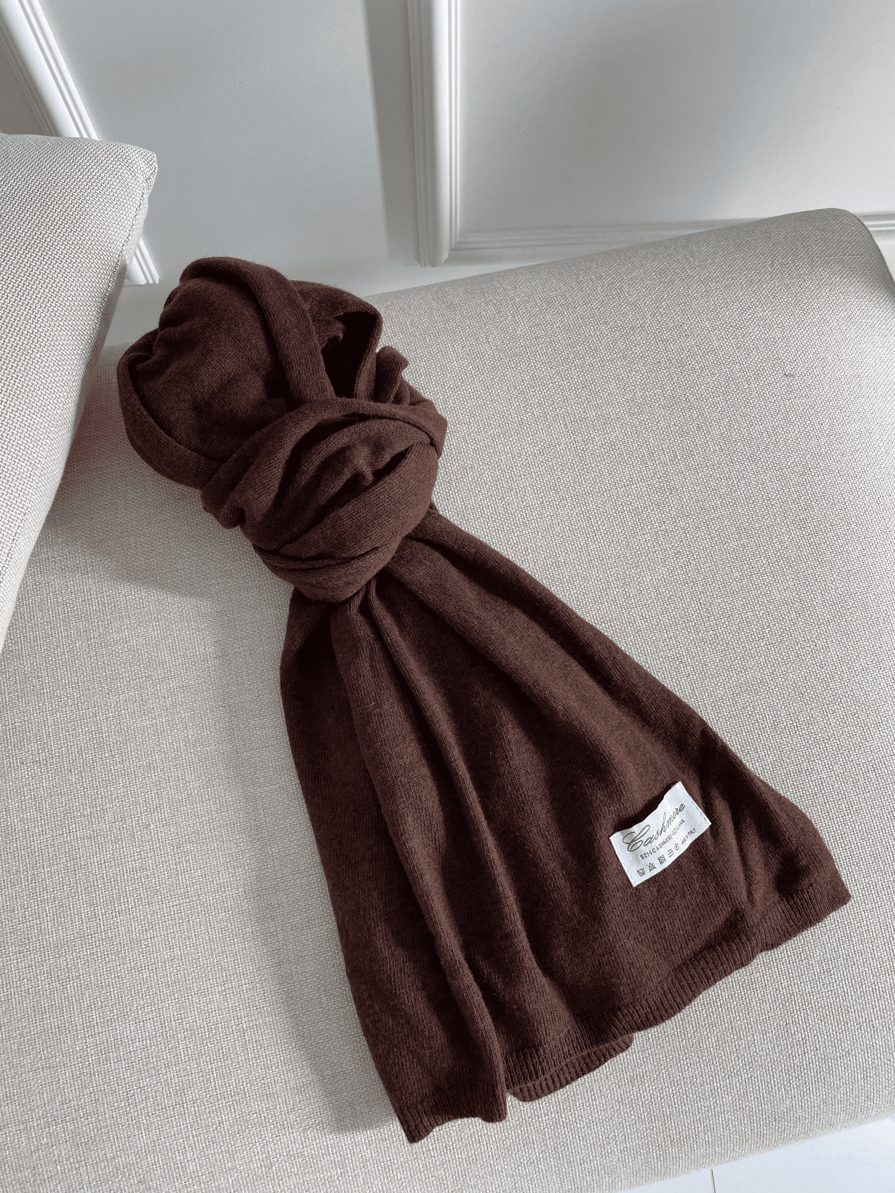Szal kaszmir i wełna Czekoladowy brąz