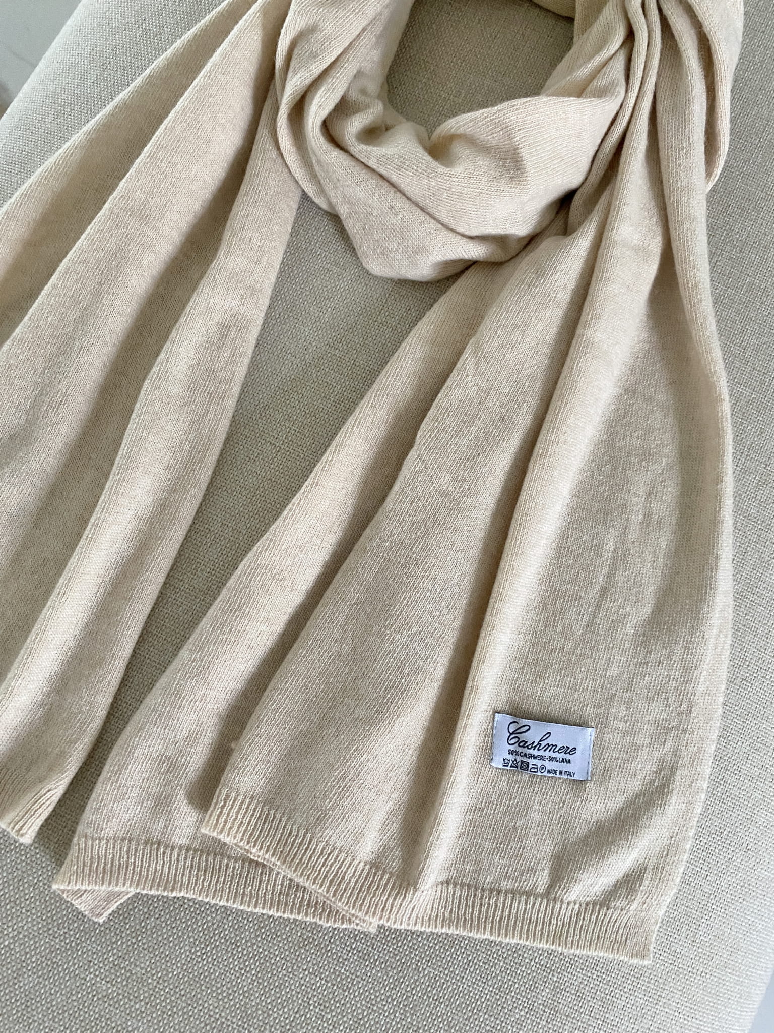 Szal kaszmir i wełna Jasny beż