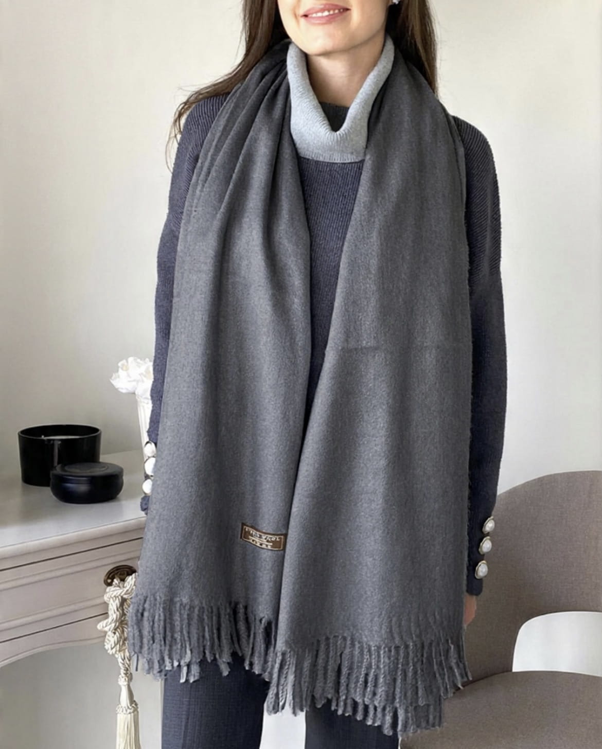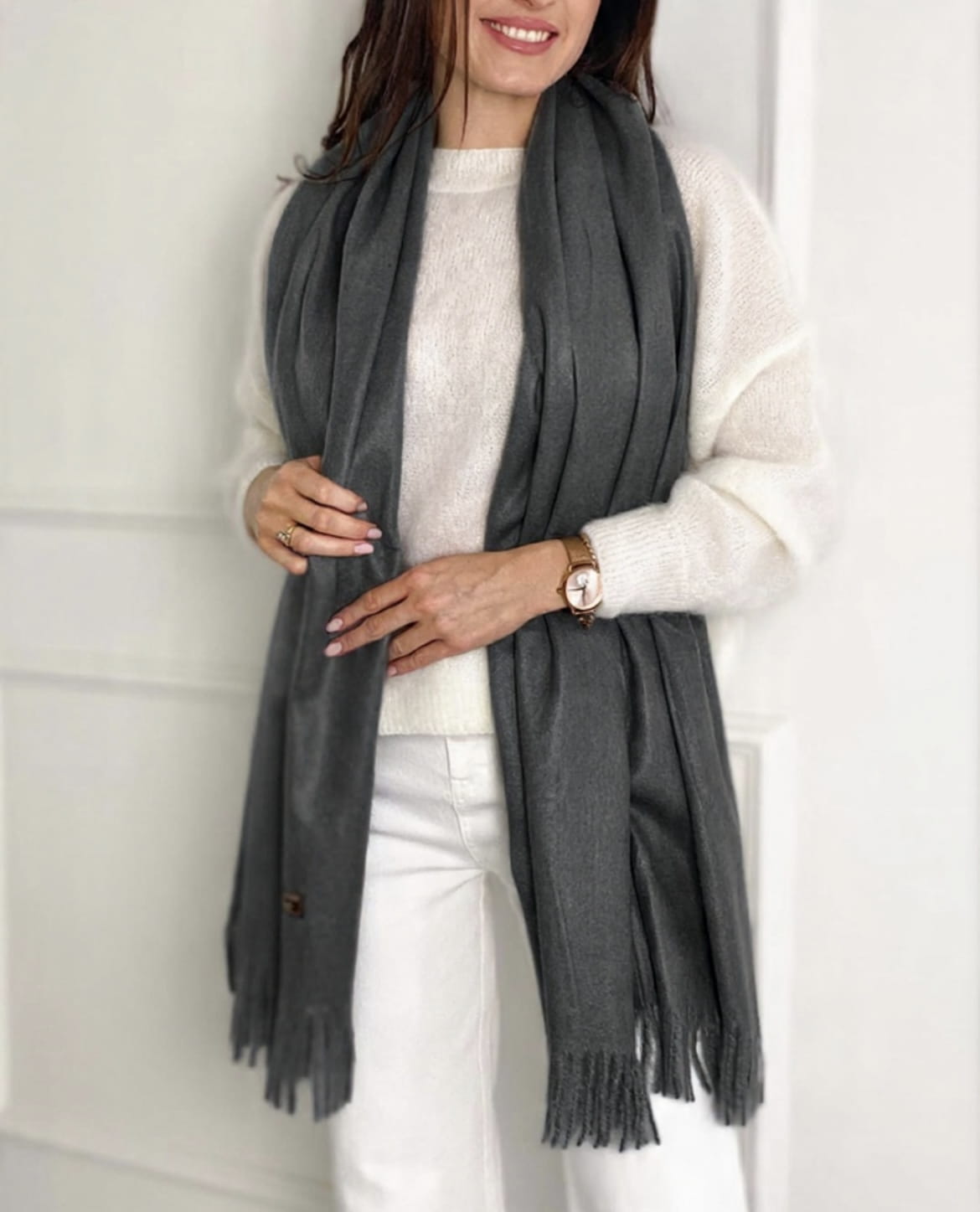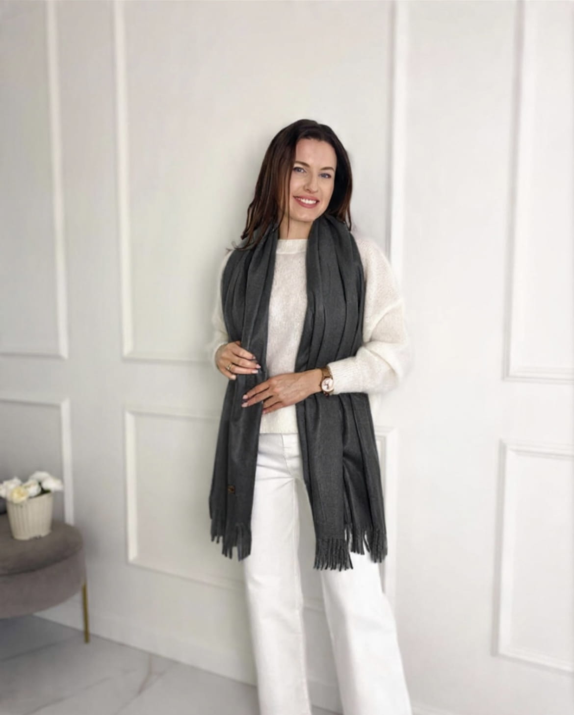 Szal z wełny dziewiczej i kaszmiru Grafit